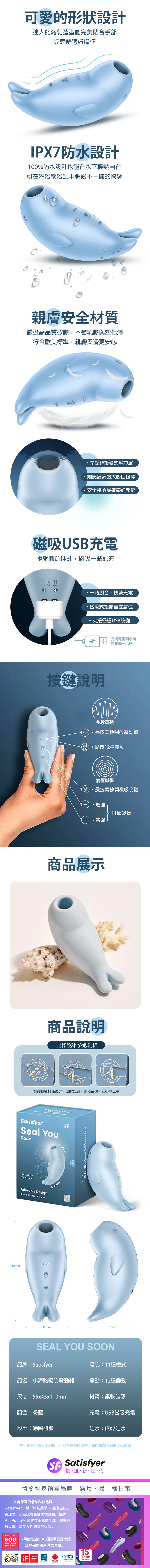 品名:Satisfyer|Seal You Soon|小海豹 陰蒂吸吮震動器