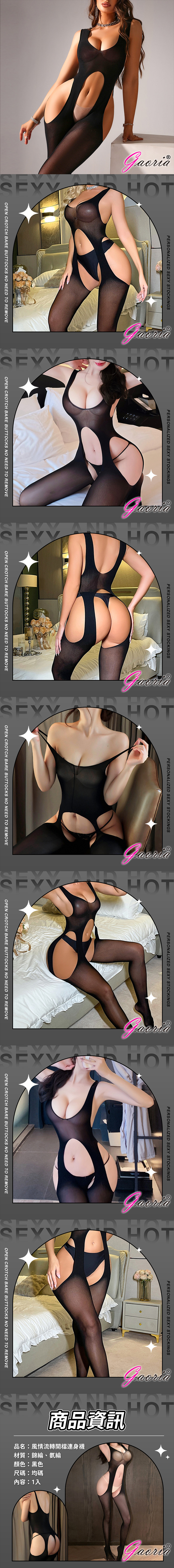Gaoria|風情流轉 開檔裸臀免脫連身情趣絲襪 黑